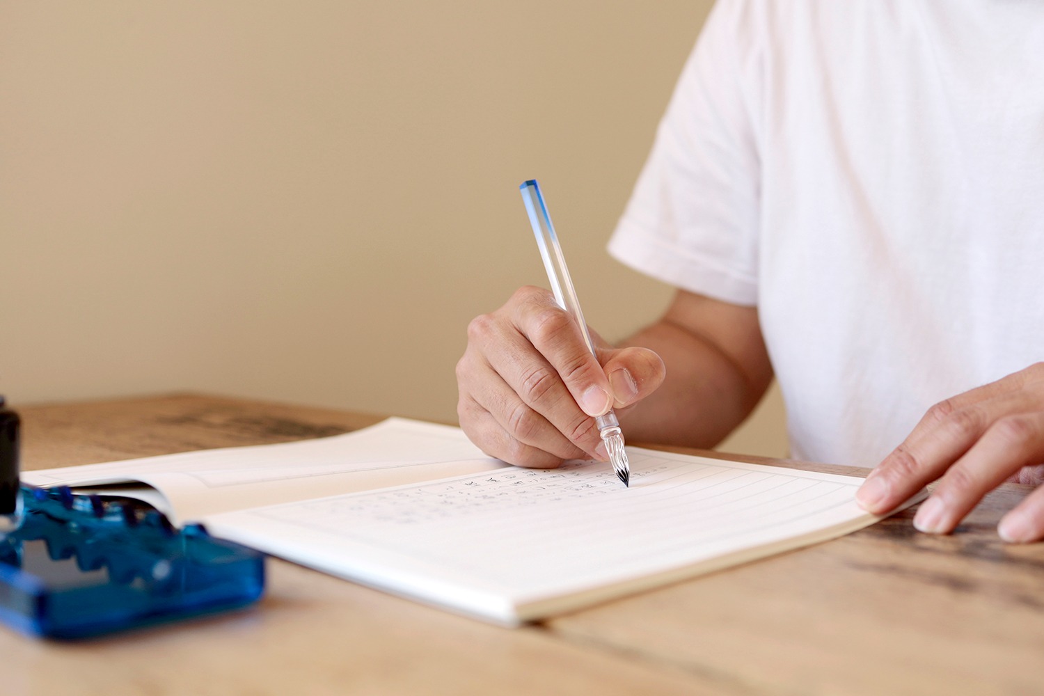 区分としては “作れるもの” でご縁を頂いて生まれたオーダー品であり商品としてKuwabaraでも発売する、ガラスペン先とアクリルの軸を融合したアイテムです。