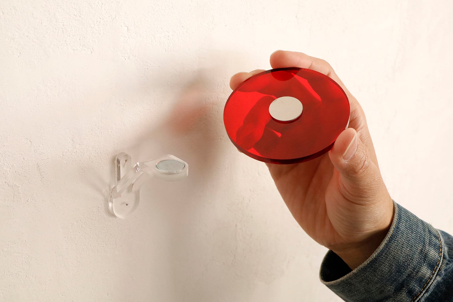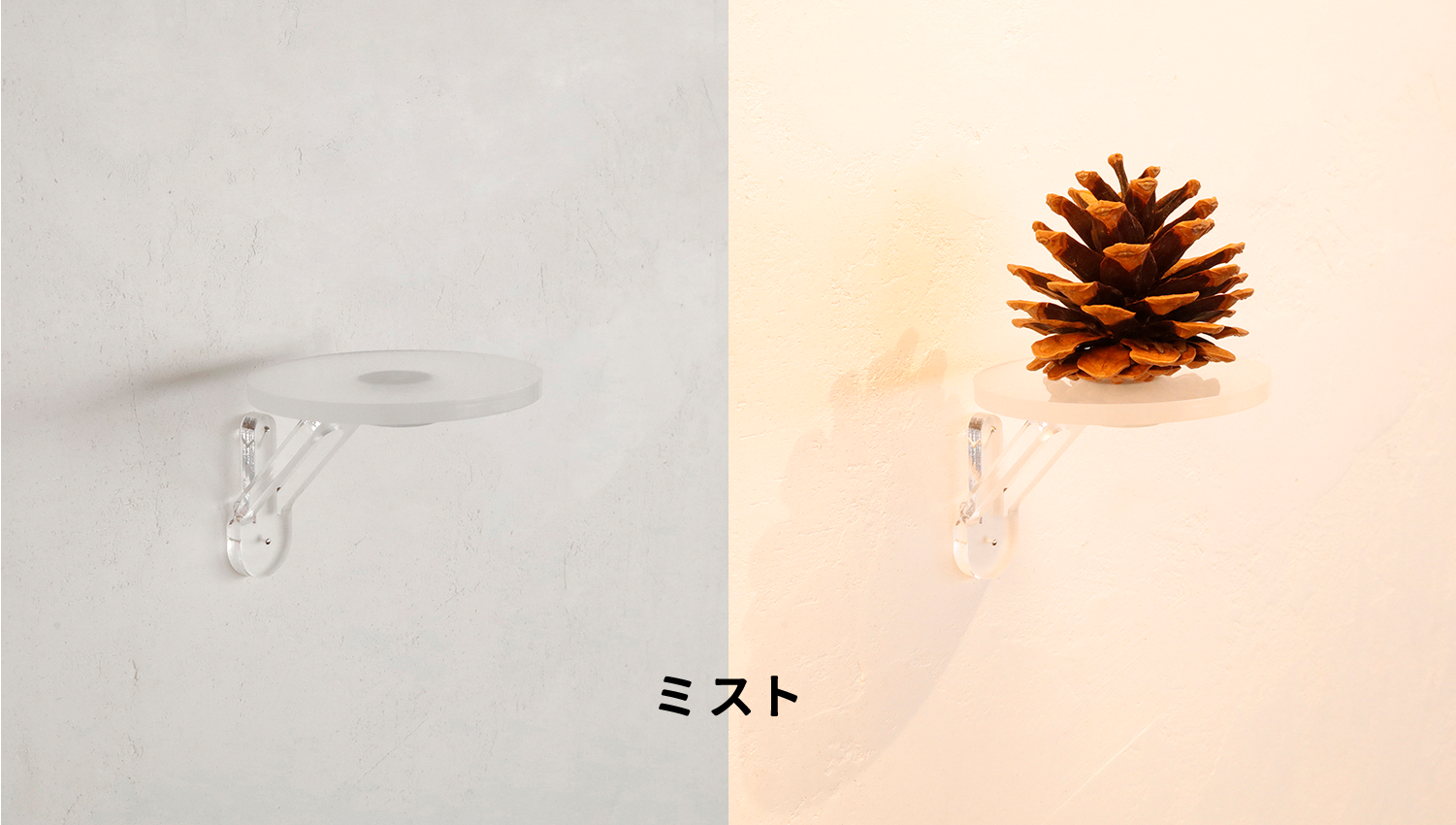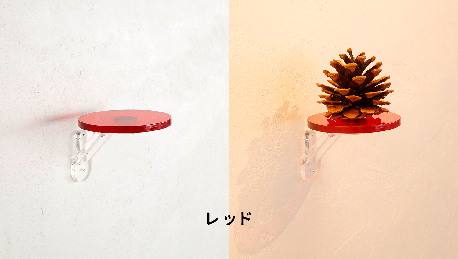 載せるモノが映える定番、アクリル厚板の円形台座です。透明感を活かしたり、色の組み合わせや壁に落ちる影も楽しめます。
