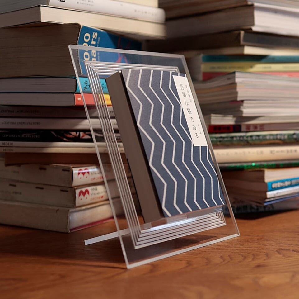 透明なアクリル素材は空間になじみ、お気に入りの本をより美しく仕立ててくれます。